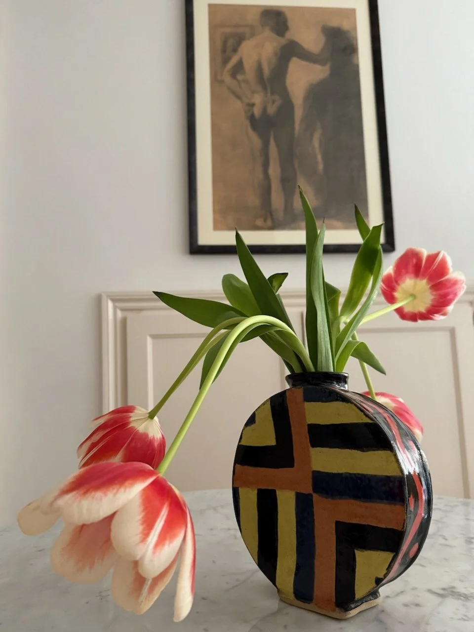 Choose a prominent spot for your ceramics — a dining table, mantelpiece, bookshelf, or favourite cabinet. Be mindful of practicality too: ceramics are fragile, especially if you have children or pets around. To keep your pieces safe, try using museum gel — a clear adhesive used by galleries to secure artworks. I used it for my own exhibition, and it truly saved my vases!